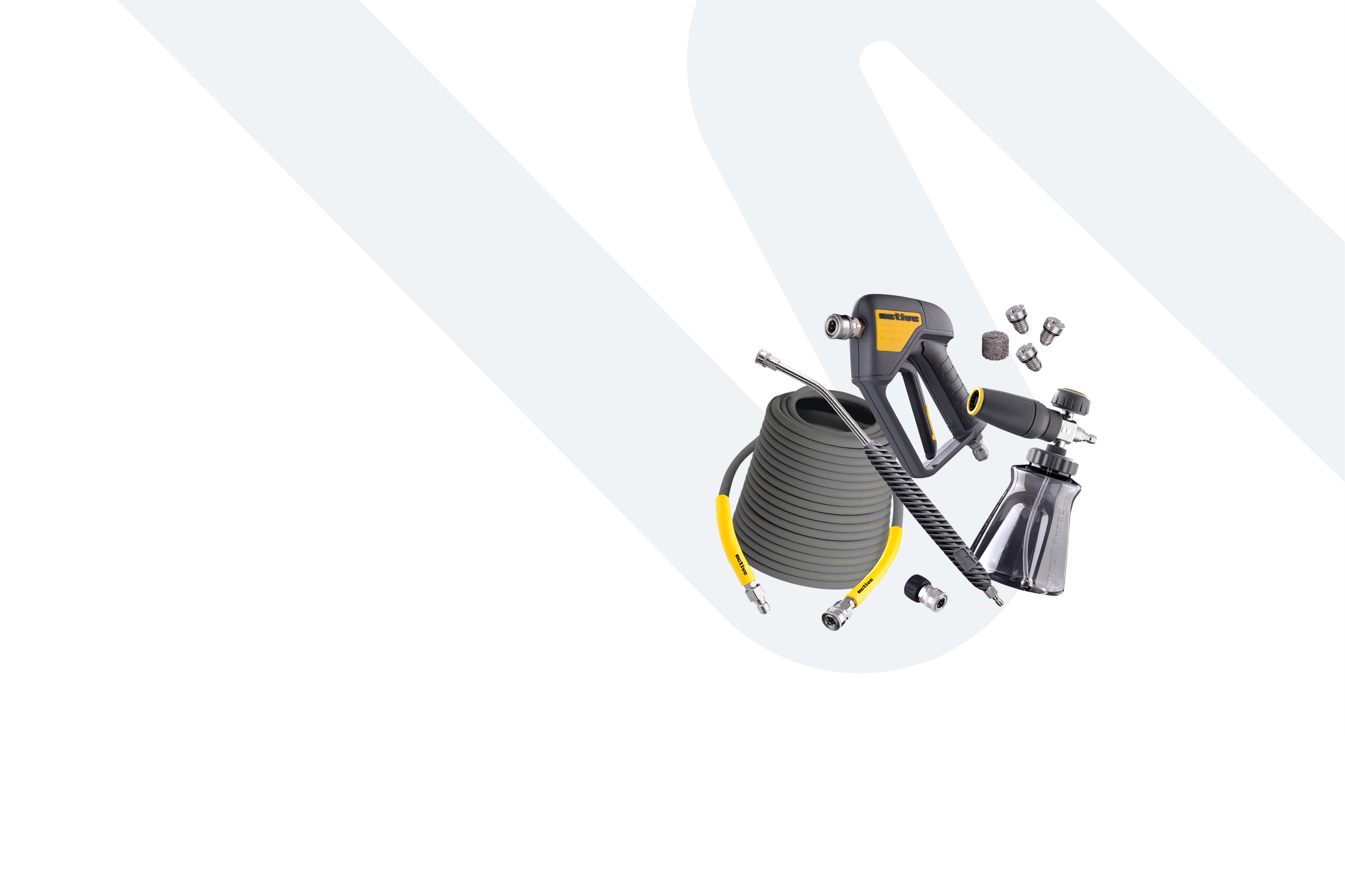Active pressure washers come with all the accessories you need out of the box. This includes: